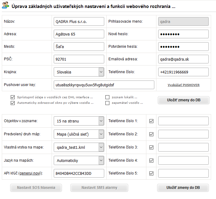 STEP 5 - save the API key to your user seeting by clicking on "ULOŽIŤ ZMENY DO DB"
